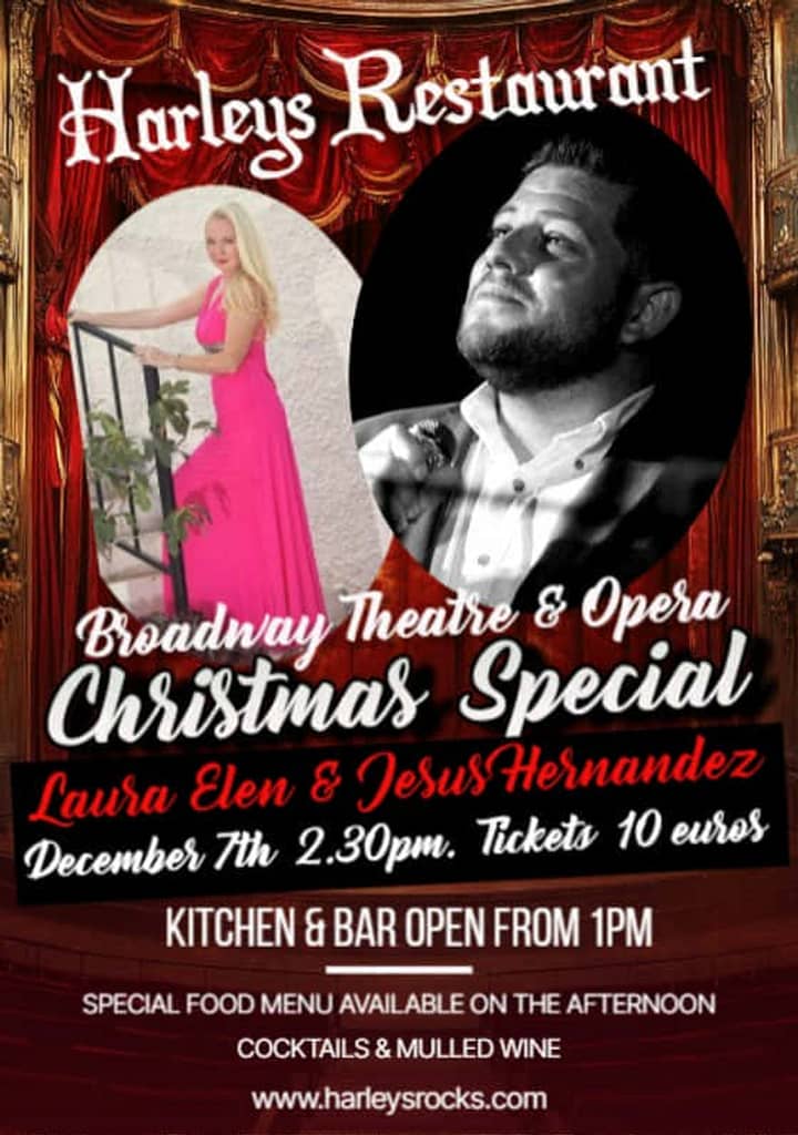 A 'Broadway, Theatre and Opera Christmas special' from Laura Ellen and Jesus Hernandez. Tickets are 10€.