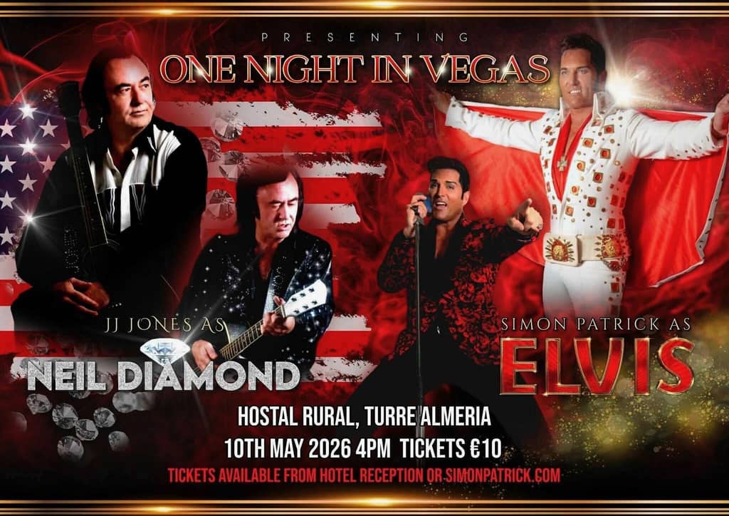 'One Night in Vegas' is JJ Jones as Neil Diamond and Simon Patrick as Elvis. Tickets 10€pp