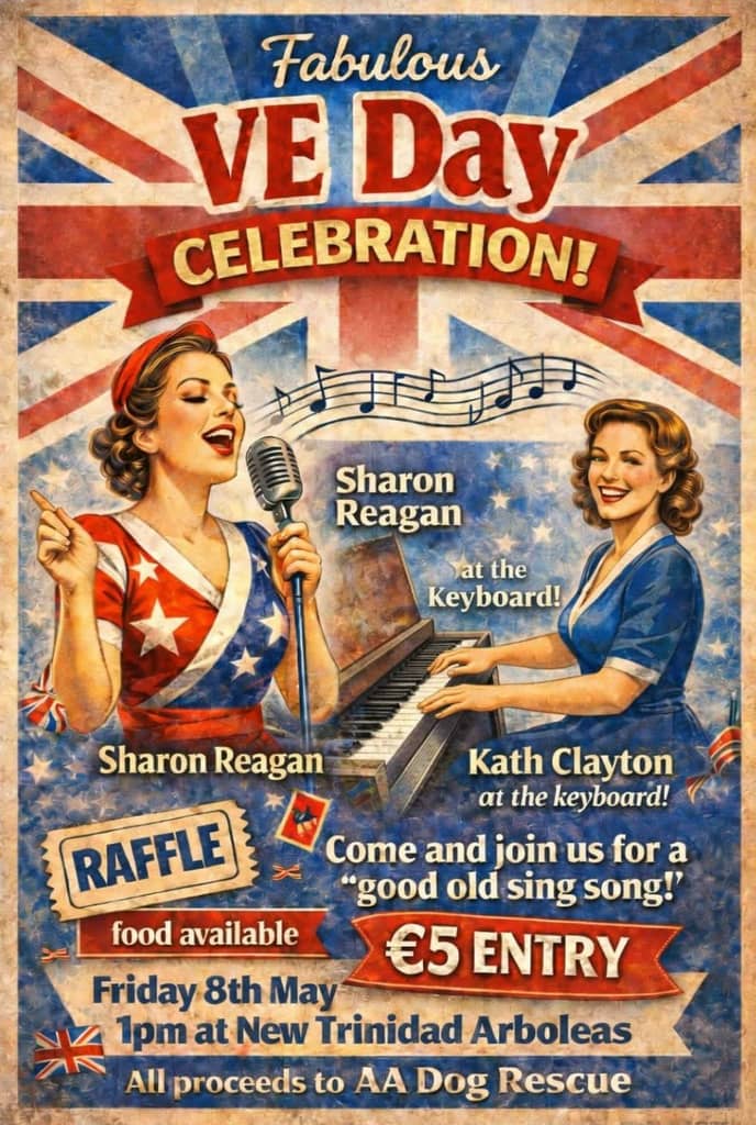 Sharon Reagan and Kath Clayton performing a VE Day Celebration. 5€ entry with all proceeds going to AA Dog Rescue.
